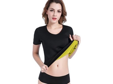 KOSZULKA NEOPRENOWA FITNESS DAMSKA KRÓTKI RĘKAW ODCHUDZAJĄCA ROZMIAR L