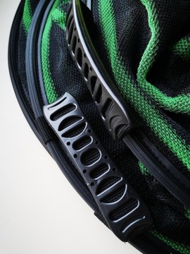 Powiększony rozmiar pierwszej obręczy gwarantuje bezpieczne lądowanie ryb w siatce.