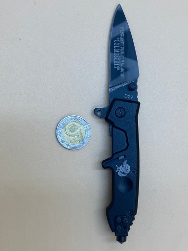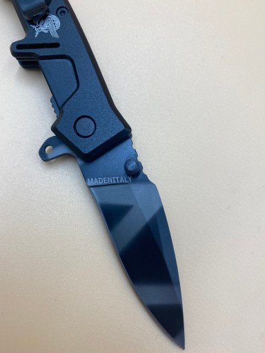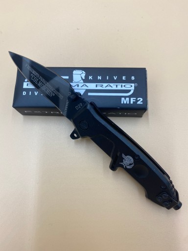 Репліка ножа Extrema Ratio MF 2 - Алюмінієва ручка, лайнер-замок, система відкривання, гладке лезо з увігнутим вирізом, сталь 440. Крім того, у ножа є розбивач скла. Завдяки міцній кліпсі переносити легко і зручно. Його ручка має форму, щоб забезпечити найбільш стабільний хват. Любителі бойових ножів легко розпізнати характерну вставку на ручці, яка стабілізує руку під час роботи. Крім того, MF2 має збільшене горло, яке також діє як ласта, що полегшує його відкриття. Ретельно виготовлена копія відомого бойового ножа. Ніж має склобій, - це як повноцінний рятувальний, так і тактичний ніж. Можна використовувати як EDC ніж. Упакований в коробку