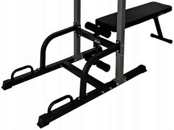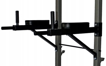Ramę uzbroiliśmy w uchwyty do dipów. Ćwiczenie dipów powoduje przyrost masy mięśniowej i zwiększa efekty wyciskania na sztandze. Treningi dipów dają świetne efekty przy dużej, jak i małej ilości powtórzeń. Dodając to ćwiczenie do swojego treningu, polepszasz wyrzeźbienia sylwetki.