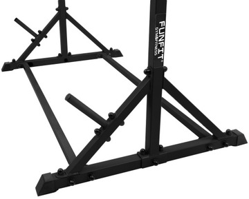 Drążek składa się z mocnej i masywnej ramy, wykonanej z grubej stali malowanej proszkowo. Pionowe profile są złączone dwoma poprzecznymi, nadając całości stabilności i wytrzymałości. Dodatkową stabilizację zapewniają mocne, skośne podpory.