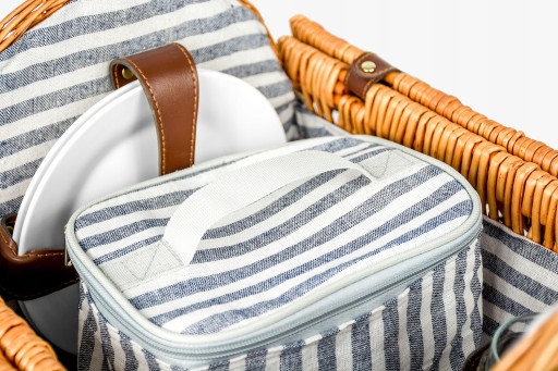 ✅Кошик оснащений пряжкою із застібкою та шкіряною (екошкіра) ручкою для зручності транспортування. Всередині кошик обшитий красивим матеріалом, який забезпечує герметичність і покращує естетичність. Крім того, всередині кошика є кріплення для захисту посуду під час транспортування. Високоякісні сталеві столові прибори додають елегантності.