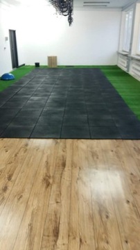 Zabezpiecza podłoże przed uszkodzeniami,zarysowaniami zwiazanymi z używaniem ciężarów, czy też innego sprzętu