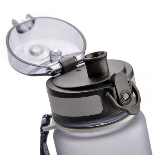 Пляшка прозора з матовим покриттям і протиковзкою поверхнею. Забезпечує плавний, м'який і рівномірний потік води, без здавлювання пляшки або смоктання.