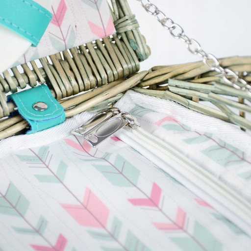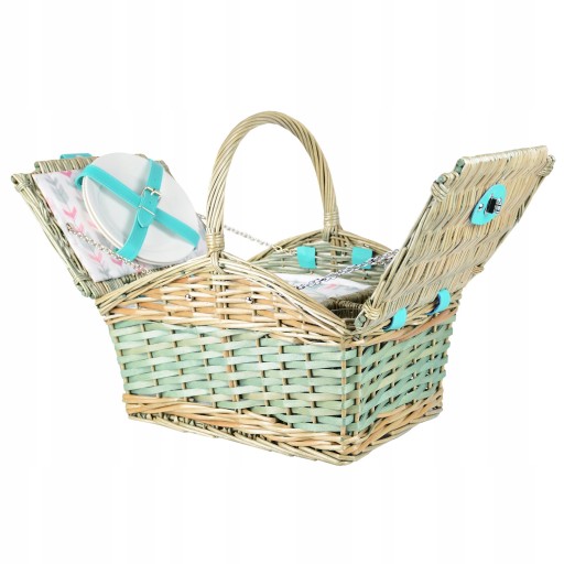 ✅Кошик оснащений пряжкою із застібкою та зручною ручкою для зручного транспортування. Всередині кошик обшитий красивим матеріалом, який забезпечує герметичність і покращує естетичність. Крім того, всередині кошика є кріплення для захисту посуду під час транспортування.