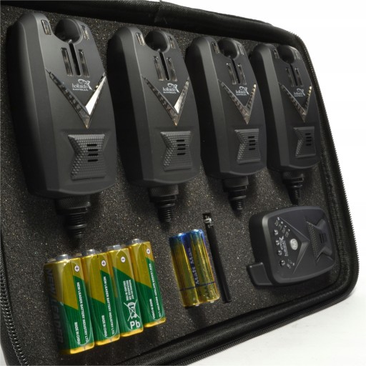 Набір складається з 4 індикаторів клювання та блоку керування, упакованих у практичний футляр, наповнений твердою піною для захисту від пошкоджень під час транспортування.