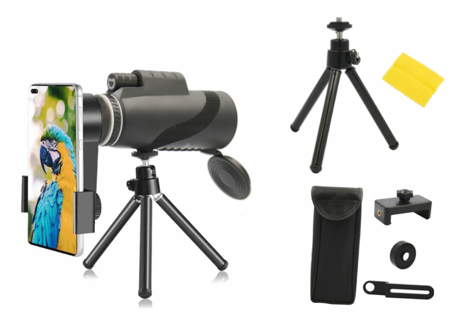 MONOPOD to teleskop kieszonkowy z uwagi na swój ergonomiczny kształt. Dodatkowo posiada statyw typu tripod oraz uchwyt do telefonu. Czyni go to najmniejszym z teleskopów mobilnych o tak dużym powiększeniu dostępnym na rynku.
