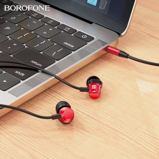 BOROFONE BM62 Prosperity - це кабельні аудіонавушники з роз'ємом AUX Jack 3,5 мм, оснащені мікрофоном, що дозволяє здійснювати телефонні дзвінки, кнопкою для управління музикою або дзвінками і металевими корпусами.