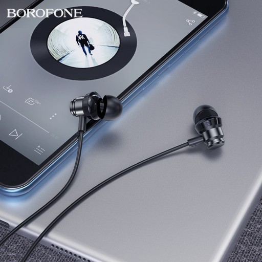 BOROFONE BM62 Prosperity - це кабельні аудіонавушники з роз'ємом AUX Jack 3,5 мм, оснащені мікрофоном, що дозволяє здійснювати телефонні дзвінки, кнопкою для управління музикою або дзвінками і металевими корпусами.