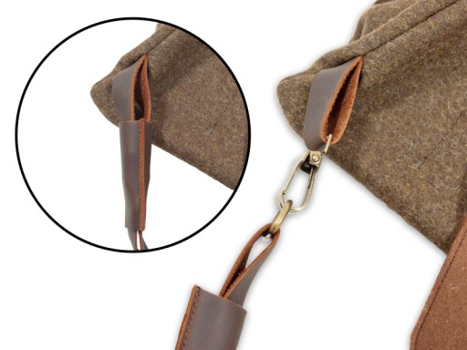 Пояс для перенесення обшитий вовною, що підвищує комфорт носіння. Регулювальні лямки оснащені карабінами для швидкого від’єднання, що полегшує надягання і знімання рюкзака. Карабіни ховаються за розсувною шкіряною кришкою (фото № 6).