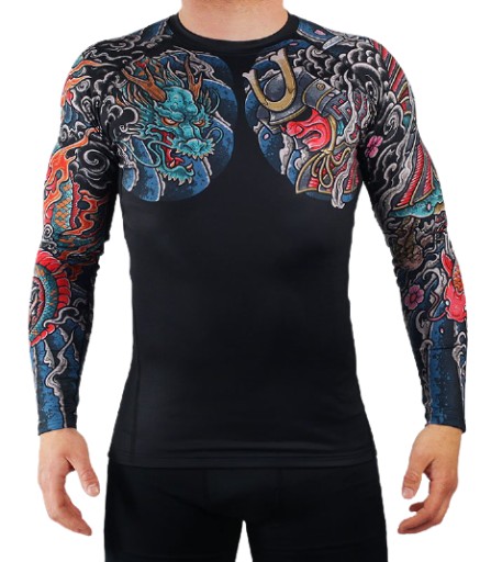 На спині ми розмістили кандзі «Бусідо». Бусідо - це слово, що складається з двох слів: "бусі" - означає самурай або воїн і "до" - слово, що означає шлях, навчання, спосіб дії та життя. Бусідо найчастіше розуміють як «шлях самурая» або «шлях воїна», який визначається 7 чеснотами бусідо: чесність, мужність, милість, повага, щирість, честь, вірність.