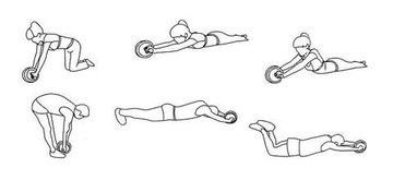 Exercises with a roller consist of moving the wheel on the ground forwards - as far as possible - and then returning to the starting position. You can exercise while standing, sitting, and kneeling on your knees.
