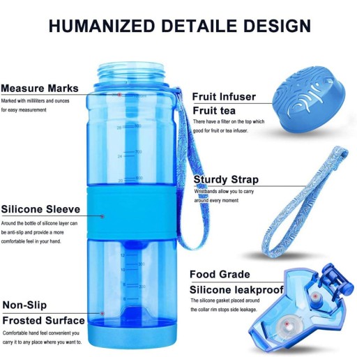 - Високоякісний матеріал: пляшка має німецький сертифікат LFGB Пляшка виготовлена з 100% нешкідливого сополіестеру Tritan. Цей пластик імпортується з США. Продукт безпечний для здоров'я та навколишнього середовища Наша пляшка для води не піддасть вас впливу шкідливих хімічних речовин, включаючи BPA (бісфенол А).