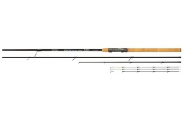 Lekki, sztywny, mocny i szybki feeder wykonany z lekkich włókien kompozytowych. Charakteryzuje się szczytową akcją i średnim ugięciem.Umożliwia błyskawiczne zacięcie oraz spokojny i pewny hol ryby. Wędzisko charakteryzuje się niską wagą i dobrymi parametrami użytkowymi. Rękojeść wykonana z korka gwarantuje pewny chwyt nawet mokrymi rękoma. Feeder zaopatrzony jest w trzy wymienne szczytówki wykonane z włókna szklanego o różnej czułości. Oferowane wędzisko to znakomita odpowiedź przede wszystkim cenowa dla wielu renomowanych firm. Wędka dla wędkarzy z mniejszej grubości portfelem, ceniących jakość, wytrzymałość oraz atrakcyjną szatę graficzną..