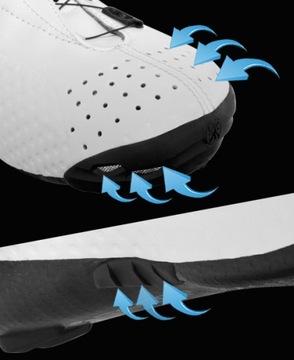 - Otwory wentylacyjne: Nawiewy powietrza w okolicy czołowej i podwójne wentylacje w okolicy zew. części stopy