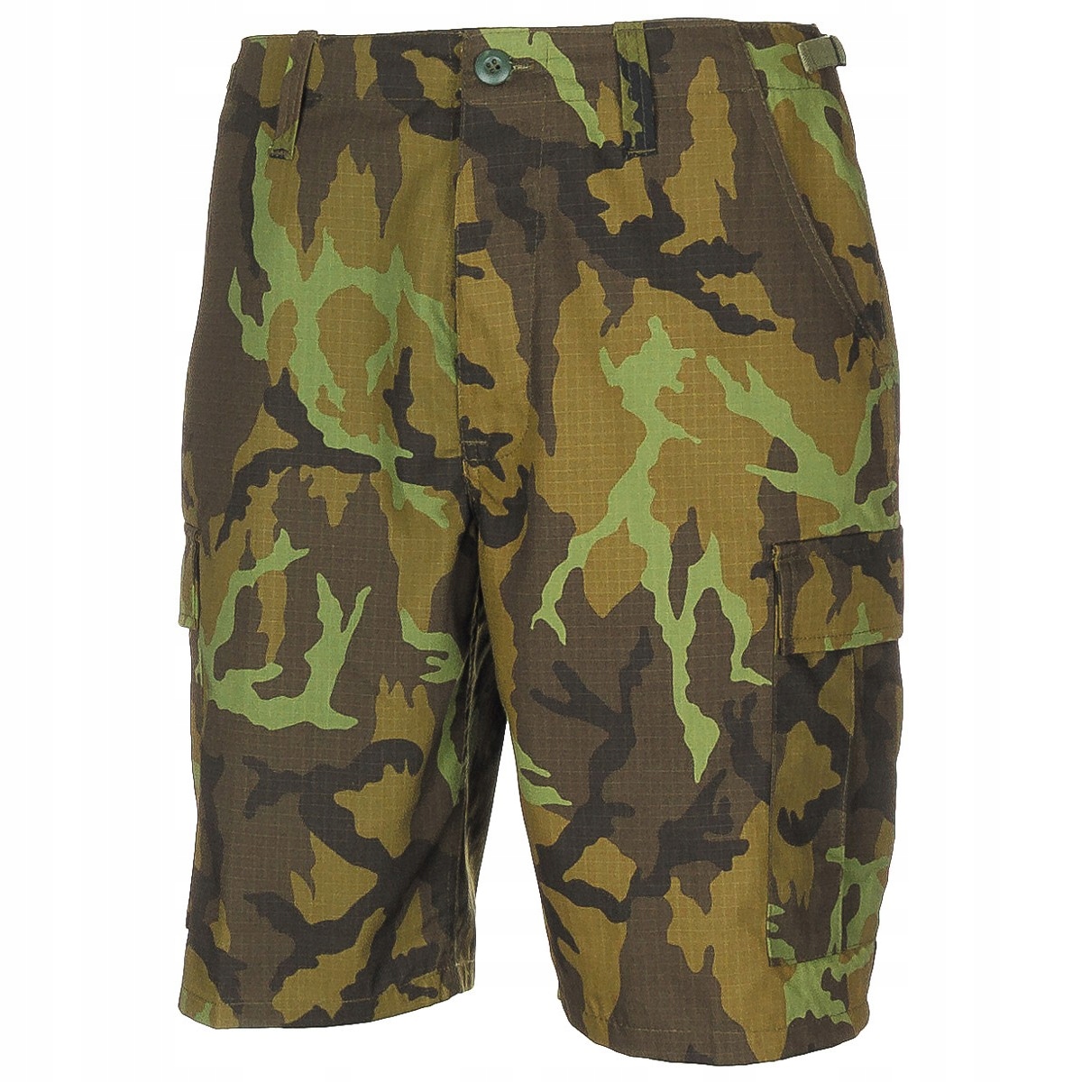• Spodenki, niemieckiej firmy MFH, Rip Stop,M 95 CZ Tarn, zapinane na guziki mucha, dwie boczne kieszenie, dwie kieszenie tylne z patką i guzikami, dwie kieszenie boczne na nogawkach z patką i guzikami.