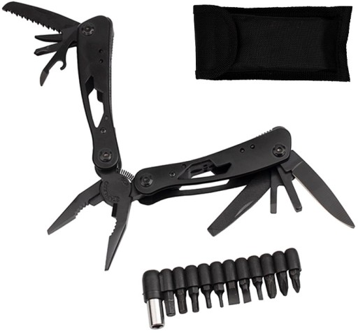 До складу входять плоскогубці, ніж, відкривачки, викрутки та інші інструменти, які видно на малюнках - разом цілих 19 різних функцій.