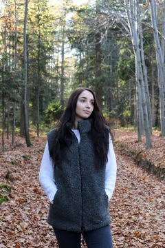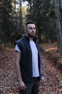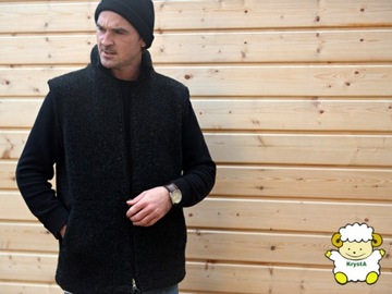 Wszystkie bezrękawniki wykonane są w 100% z wełny owczej. Kołnierz wewnętrzny i kieszenie wykonane z polaru.