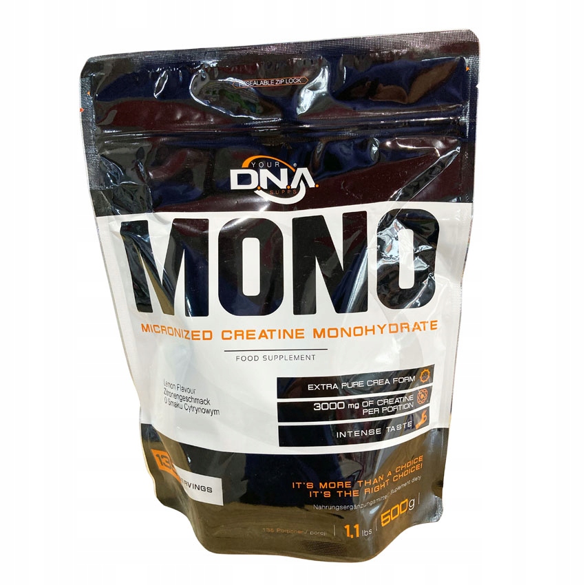 DNA Your Supps Mono w postaci 95-procentowego monohydratu kreatyny należy do grupy najczystszych, najlepiej przyswajalnych i najskuteczniejszych preparatów keratynowych na rynku. Dodaj to tego trzy szalone smaki, przystępną cenę i farmaceutyczną jakość produktu- czy nie właśnie tego szukasz?