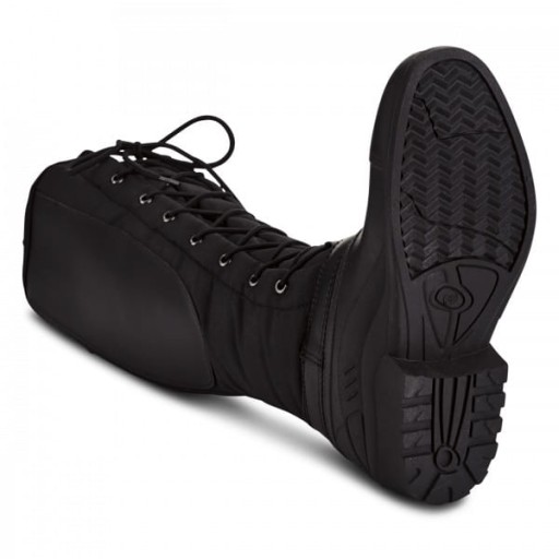Утеплені термочеревики з модною шнурівкою поло на підкладці, яка дозволяє регулювати по литці. Зовнішній матеріал виготовлений з міцного оксфордського поліестеру зі вставкою злегка еластичного синтетичного каучуку для оптимального прилягання до литки. Вони мають утеплений верх з флісовою підкладкою та підсиленнями з внутрішньої сторони литок. Стійка, водонепроникна частина, що покриває стопу, виготовлена з термопластичної гуми TPR. Взуття виконано у вигляді черевиків з профільованою підошвою та міцним каблуком, повністю обшиті теплим штучним плетеним хутром. Ззаду вони мають блискавку YKK® для зручного одягання та знімання. Прикрашений бічними світловідбиваючими смугами.