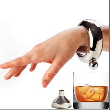 Piersiówka bransoletka wykonana ze stali szlachetnej. Warto mieć małe co nieco zawsze pod ręką. Zapakowana w prezentowe pudełko idealnie nadaje się na prezent. W zestawie stalowy lejek dzięki napełnienie piersiówki będzie jeszcze łatwiejsze