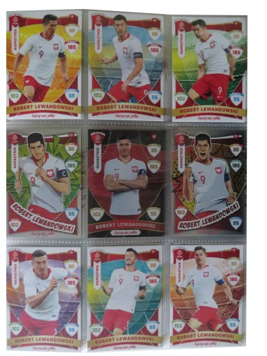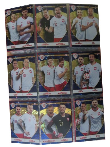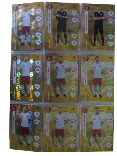 ДІЄВІ ЗОЛОТІ КАРТКИ - 18 ДВОСТОРОННІХ КАРТ - З ЛІВОГО СТОРОНУ, ІНФОРМАЦІЯ ПРО КАР'ЄРУ КОЖНОГО З 18 ГРАВЦІВ ПОЛЬСЬКОЇ КОМАНДИ.
