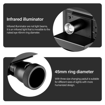 3. Dostosuj położenie cylindra łączącego, przesuń krzyżyk na środek ekranu wyświetlacza i dokręć pierścień tulei noktowizora, aby zakończyć regulację.