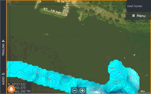 Після перемикання на накладення даних Genesis Live ми швидко отримуємо батиметричну карту місця риболовлі, в якому пливемо