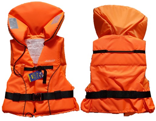Рятувальний жилет. Є в різних розмірах - для дорослих і дітей. Сертифікат CE, виданий PRS (Польський реєстр судноплавства) № TC/PPE/094/2010 Виготовлено відповідно до стандарту PN-EN ISO 12402-4:2007. Усі жилети мають промежинні ремені, які не дозволяють користувачеві покинути жилет. Також в комплекті свисток і світловідбиваючі елементи. На передній частині жилета поролон має перепади товщини, що призводить до падіння у воду, перевертання людини боком на спину, де фіксується голова (на випадок втрати свідомості).