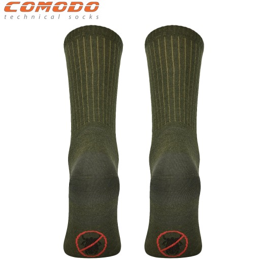 Довгі мисливські шкарпетки польської компанії COMODO ідеально підходять для будь-яких видів діяльності: спорту, туризму, виживання, військових дій, а також для повсякденного носіння. Такий фасон забезпечує відмінну терморегуляцію і можливість носити шкарпетки під високі черевики, черевики або ботфорти.