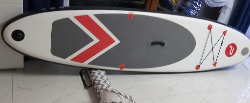 Надувна дошка – чудова пропозиція до майбутнього літа для всіх, хто любить активно проводити час біля води. Дошка виготовлена з міцного міцного матеріалу. Дека дошки покрита протиковзкою накладкою. Ця модель має три ласти, що гарантує хорошу стійкість і напрямок під час плавання. Два постійно прикріплені, а центральний закріплений. Дошка також оснащена передніми банджі-шнурами для зручного транспортування багажу. Практична ручка полегшує перенесення.
