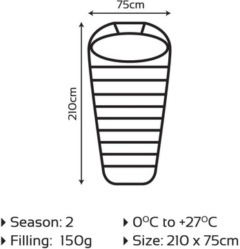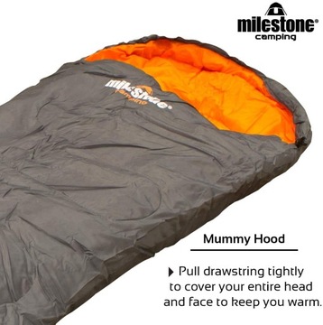 Milestone Mummy 2 Season Sleeping Bag Single Grey 210 x 75cm to doskonały śpiwór, który jest idealny do biwakowania, wędrówek i festiwali. Klasyczny styl mumii oznacza, że jest łatwy w użyciu - wystarczy mocno wyciągnąć sznurek, gdy jest schowany w torbie, aby pokryć całą twarz i głowę, dzięki czemu możesz pozostać wyjątkowo ciepły i przytulny podczas zimnych nocy. Zintegrowany dwustronny zamek błyskawiczny sprawia, że śpiwór jest dostępny zarówno z wnętrza, jak i z zewnątrz śpiwora dla Twojego spokoju. &Cechy Dane techniczne: Miękka, lekka i izolacyjna powłoka poliestrowa 170T zapewnia ciepło i przytulenie w chłodniejszych nocy 150gw m2, które zapewnia komfort i ciepło podczas zimnych nocy, ale jest oddychająca do użytku w miesiącach letnich Klasyczny styl mumii oznacza, że po prostu musisz mocno wyciągnąć sznurek, gdy jest schowany w torbie, aby zakryć całą twarz i głowę, aby pozostać wyjątkowo ciepłym zamkiem błyskawicznym sprawia, że śpiwór jest dostępny zarówno z wnętrza, jak i z wnętrza poza śpiworem dla Twojej wygody Zawiera przydatną torbę do łatwego przechowywania i transportu