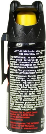 Перцевий спрей для собак допомагає забезпечити безпечне повернення додому. Це дуже корисно в таких обставинах, як самотні прогулянки або індивідуальні заняття спортом на свіжому повітрі. Серія газів «Anti Hund» - ефективний захист від наявних на ринку газів «Antidog», тобто від агресивних собак, а також для захисту від інших небезпечних тварин.