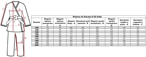 Щоб підібрати правильний розмір, слід орієнтуватися на зріст гравця. Розміри змінюються кожні 10 см. Гравцям із зростом на межі розмірного діапазону ми рекомендуємо вибирати кімоно більшого розміру, наприклад, на зріст 145 см - рекомендуємо кімоно розміром 150 см.