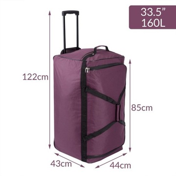 DUŻA WALIZKA PODROŻNA NA KOŁKACH 160L FIOLETOWA