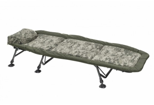 100% плоский, з дуже привабливим цифровим камуфляжним принтом. Товстий і зручний матрац пропонує найефективнішу систему регулювання жорсткості за допомогою натягу за допомогою еластичної шнурівки знизу. Ще однією великою перевагою є ніжки з великими регульованими ніжками та можливістю великого подовження.