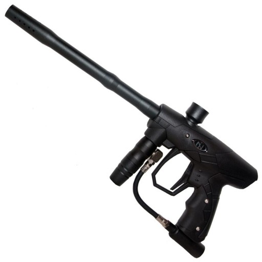 Гумові ручки, регульований спусковий гачок, система Break Beam eye, вага 886 г, затискна подача, місткість близько 600 куль з 0,8-літрового циліндра 3000 PSI.