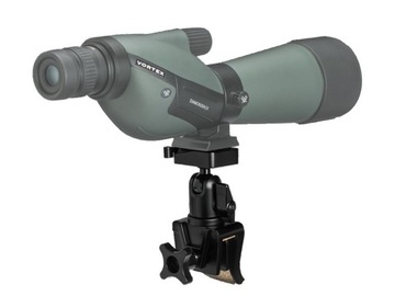 Zaczep wyposażony jest w standardowy gwint, pasujący do wszystkich lornetek i lunet obserwacyjnych marki Vorex. Podstawę, do której mocujemy optykę, osadzono na głowicy kulowej (obracana we wszystkich kierunkach), co pozwala na błyskawiczną zmianę obiektu obserwacji oraz płynne podążanie za celem.