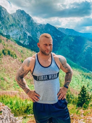 Безрукавка — ідеальна спортивна сорочка, оскільки дозволяє вільно рухатися під час тренувань. Відповідні вирізи підкреслюють фігуру та забезпечують привабливий вигляд. Чоловіча безрукавка з принтом FURIA WEAR - стійка до стирання і деформації. Друк виконано методом трафаретного друку.