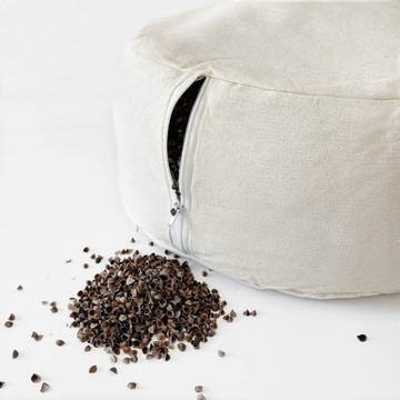 The cushions are designed to be durable and highly functional: they consist of two durable layers, a washable outer cover and an inner cover filled with buckwheat hulls mixed with lavender hulls.