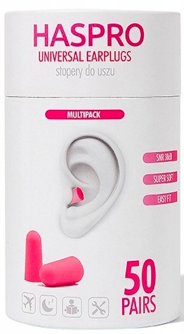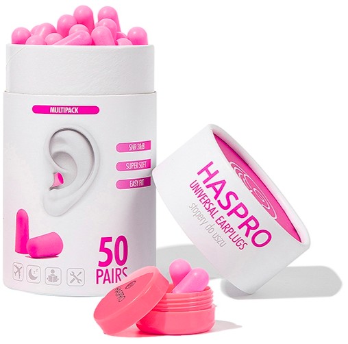 Haspro Tube50 – це сучасна збірна упаковка у вигляді туби, що містить 50 пар одноразових берушів із зручного та надзвичайно ніжного пінополіуретану, які легко вставляються в кожне вухо менш ніж за хвилину. Додатково до кожного набору йде невеликий контейнер для зберігання пробок.