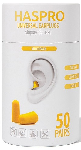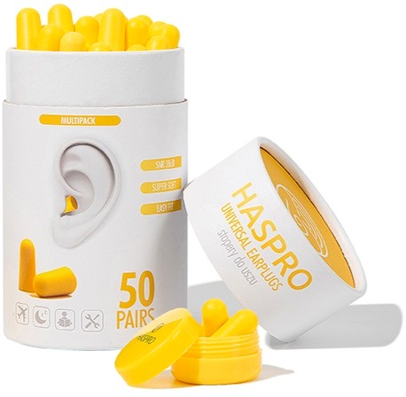 Haspro Tube50 – це сучасна збірна упаковка у вигляді туби, що містить 50 пар одноразових берушів із зручного та надзвичайно ніжного пінополіуретану, які легко вставляються в кожне вухо менш ніж за хвилину. Додатково до кожного набору йде невеликий контейнер для зберігання пробок.