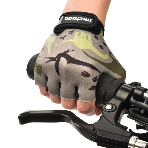 Велосипедні рукавички Meteor захищають найчутливішу зону руки. Внутрішня частина виконана з ніжної, м'якої екошкіри. Матеріал доповнений пом'якшувальними вставками з поролону. Зовнішня частина виконана з м'якого матеріалу з кольоровим принтом.