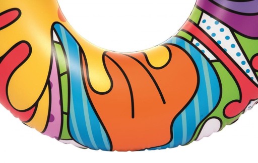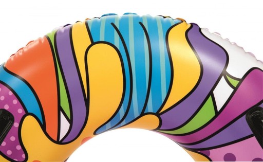 Фантастичне надувне барвисте кільце для плавання ідеально доповнить водні розваги. Колесо має діаметр 119 см, тому найкраще підходить для дітей старшого віку. Кермо має зручні ручки, які полегшують утримання на воді. Ідеально підходить як для гри, так і для навчання плаванню. Барвиста графіка додатково приверне увагу кожного пляжника.