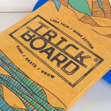 Trickboard to deska do ćwiczenia balansu, która jest znakomitym uzupełnieniem każdego sportu, nie tylko deskowego. Dzięki desce i wałkowi możecie ćwiczyć w domu lub na powietrzu bawiąc się ze znajomymi lub wykonując porządny trening sportowy, np. przygotowując się do sezonu narciarskiego lub snowboardowego. Prosta konstrukcja, ale nieskończenie wiele możliwości. Trening pozwala rozwinąć czucie głębokie, zwiększyć kontrolę nad własnym ciałem, ćwiczyć koordynację wzrokowo-przestrzenną, a przede wszystkim świetnie się bawić.