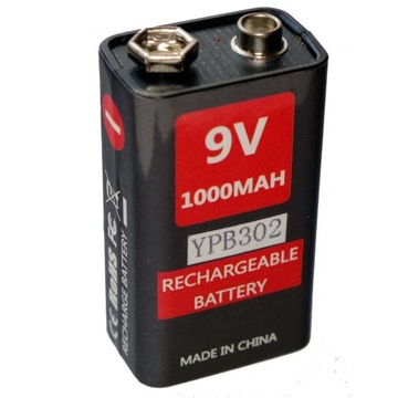 1x 9V 6F22 1000mah rechargeable battery with charging via USB port