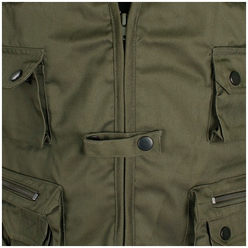 Жилетка закривається на блискавку і клапан на застібку. Перевагою цього ремінця є можливість кріплення, наприклад, ремінця для фотоапарата, завдяки чому він не вдаряється об тіло під час ходьби.