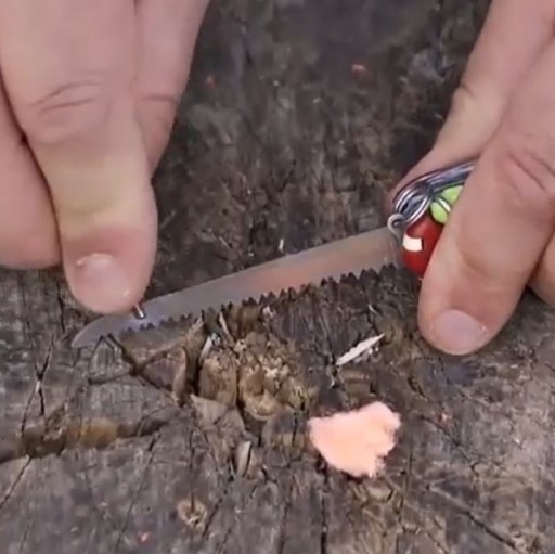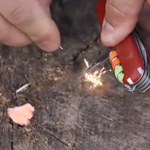 - сталевим елементом канцелярського ножа «подряпайте» частину поверхні кременю, щоб іскри потрапили на трут