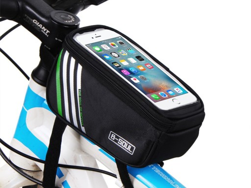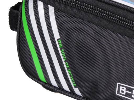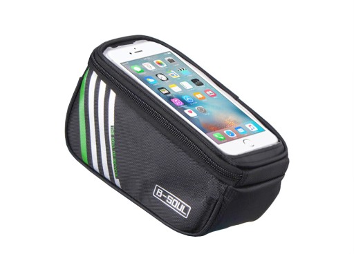 Сумка повністю жорстка і виготовлена з міцного матеріалу. Зручний у використанні, він дозволяє легко використовувати всі функції телефону під час їзди на велосипеді. Кріпиться на раму велосипеда за допомогою регульованої липучки. Він може вмістити пристрої з діагоналлю макс. 6.8'' Має світловідбиваючі смуги для підвищення безпеки на дорозі.