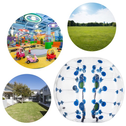 Широке застосування - широко використовується у дворі, парку, пляжі, ігровому центрі. Грайте в такі ігри, як Bubble Soccer, Bull Rush і Last One Standing. Костюм діаметром 1,5 м для дорослих зростом понад 1,6 м/5,2 фута, костюм діаметром 1,2 м для дітей від 1 м/3,3 фута до 1,5 м/4,9 фута.